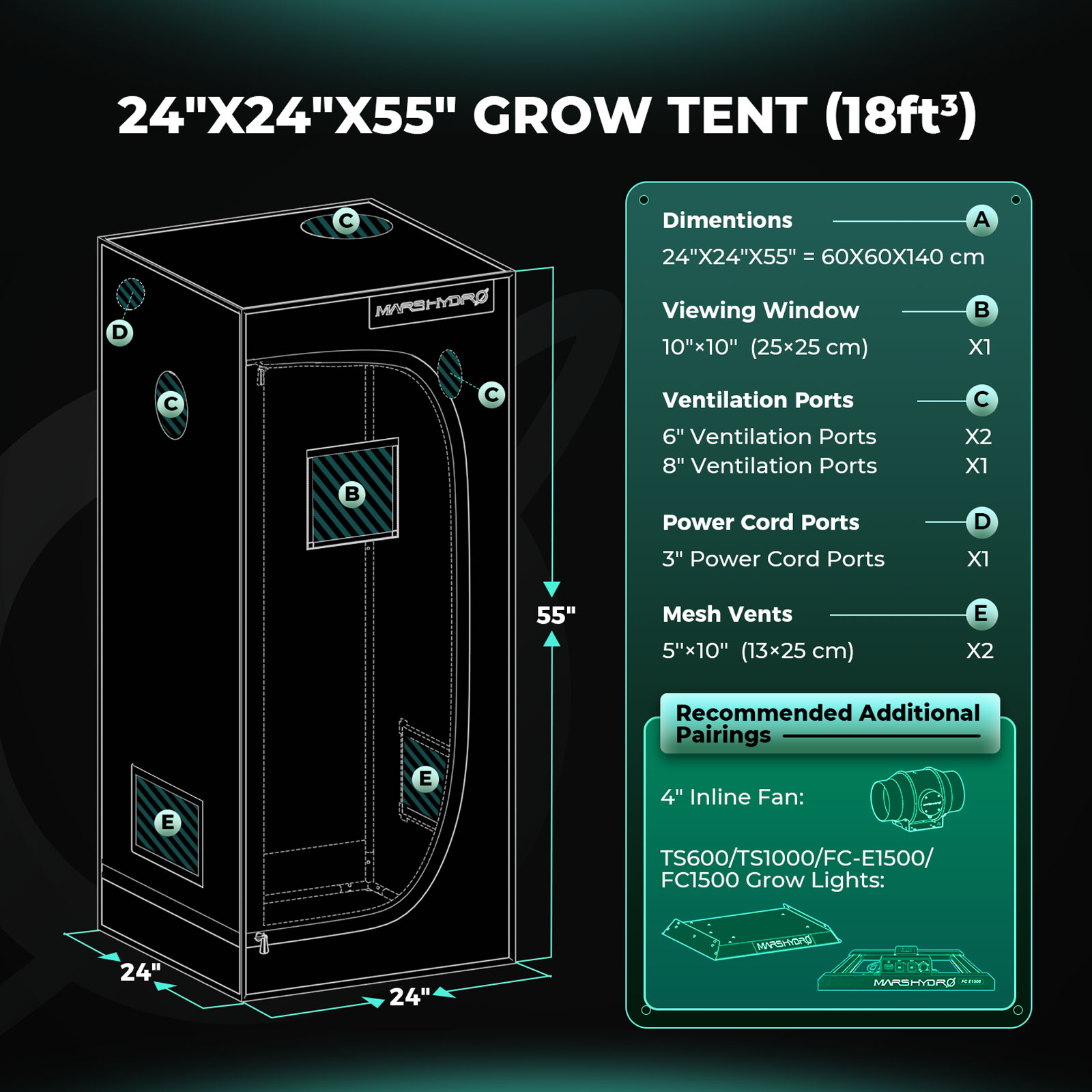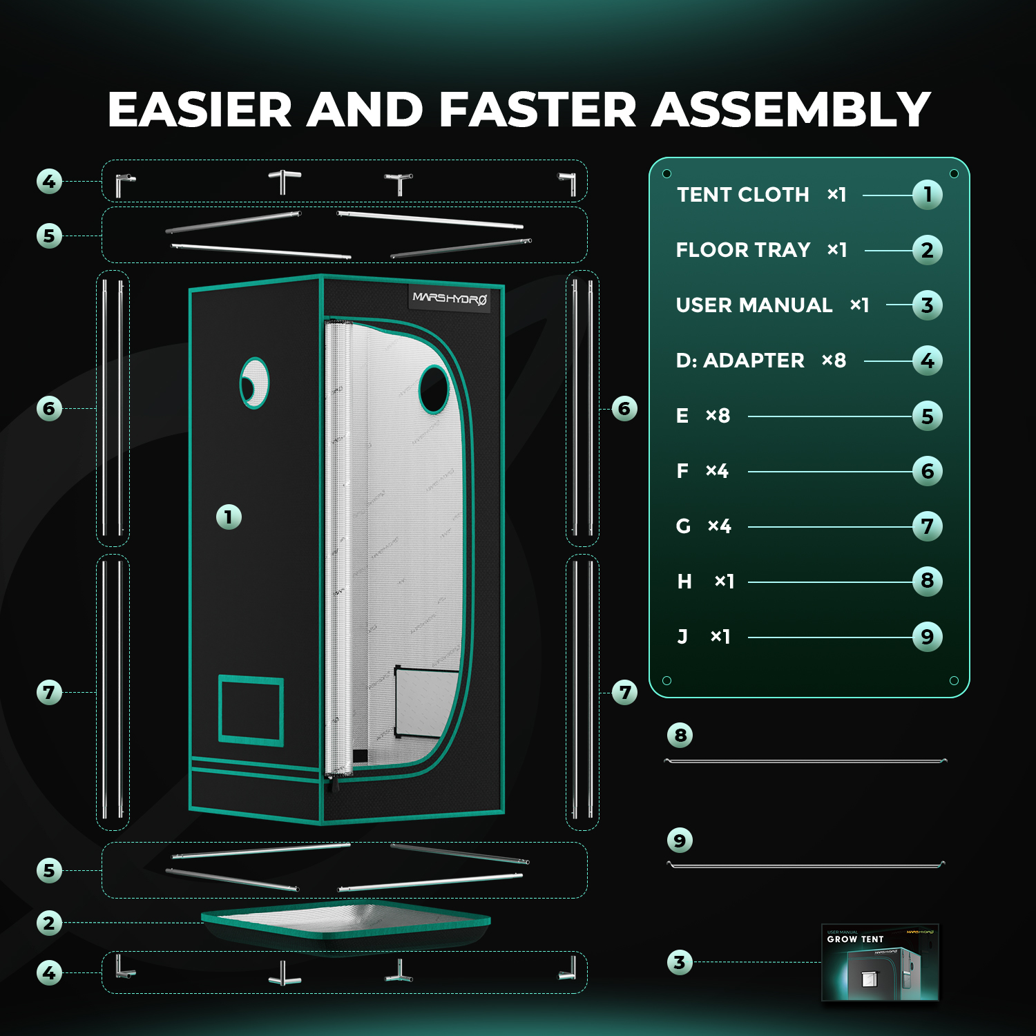 With an iron frame and metal corners that support up to 88 LB, Mars Hydro grow tents will not rust, nor tip over or be crushed.