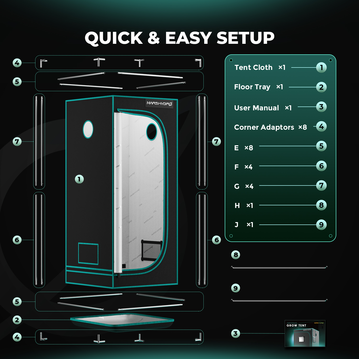 With an iron structure together with steel corners that support up to 110LB, Mars Hydro grow tents will not rust, neither tip over nor be crushed.