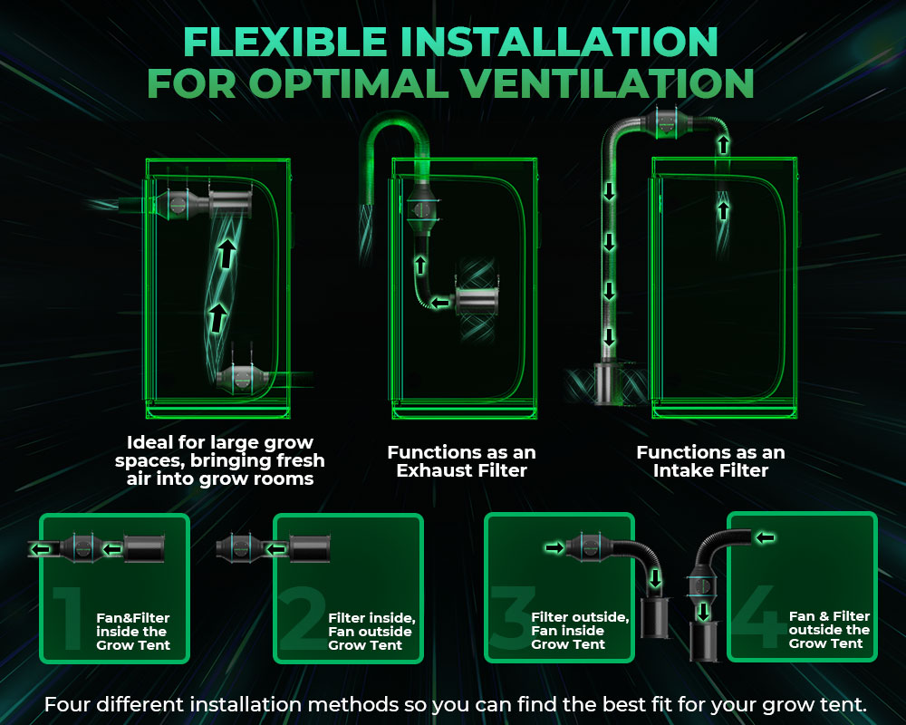 • Ventilation Kit -4'' Inline Fan & 4'' Carbon Filter Combo