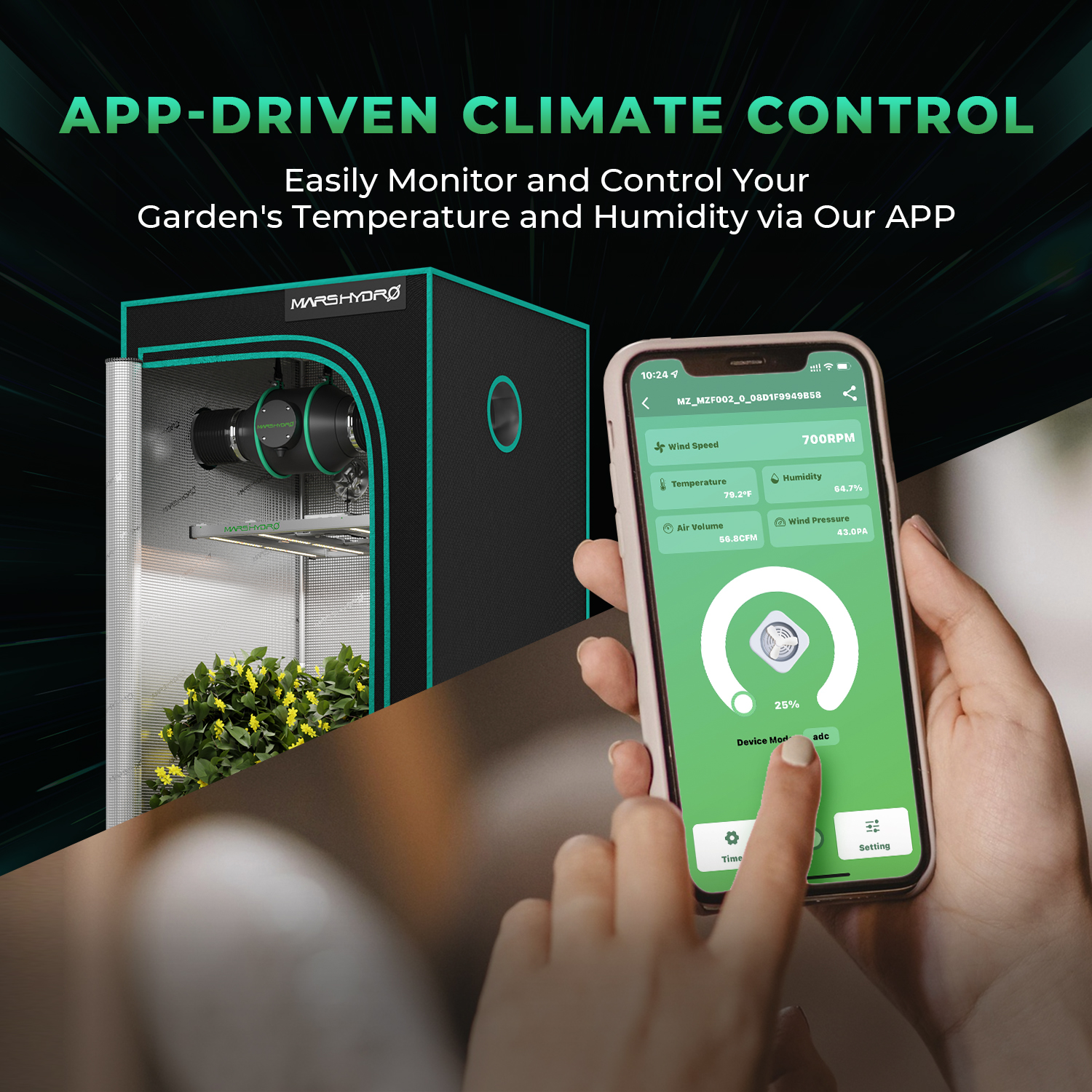 To add smart control features for "Inline Fan", please select the "iconnect smart controller" in "add-on". The most affordable complete grow tent kit, perfect for budget-conscious beginners. Designed for small-scale growing, it supports all grow stages for 1-2 plants or serves as a dedicated solution for the seedling stage. 【TS600 Grow Tent Kit Complete System Includes】Mars Hydro TS600 grow light, 60x60x140cm grow tent, 4"inline fan with speed controller, 4"carbon filter, 33ft length flex ducting, duct clamps,6.5" clip fan, grow room glasses,  elastic trellis net, 3 x grow bags, timer, humidity thermometer, pruning shears, corner shelf, rope hanger.